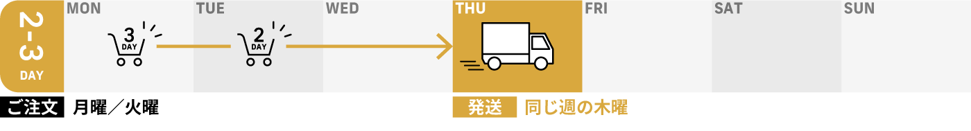ご注文日と同じ週の木曜に発送します。(2~3日)